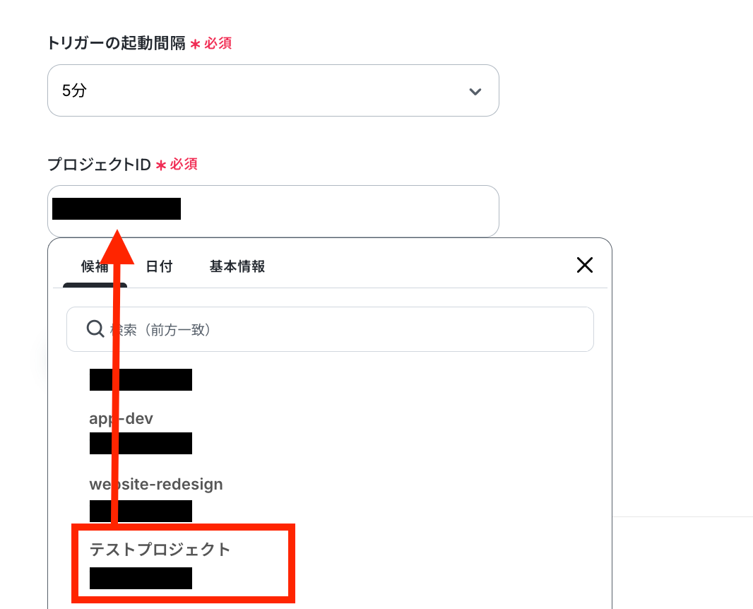 Yoomの設定画面に戻り、作成したイシューのプロジェクト先を候補から選択します!