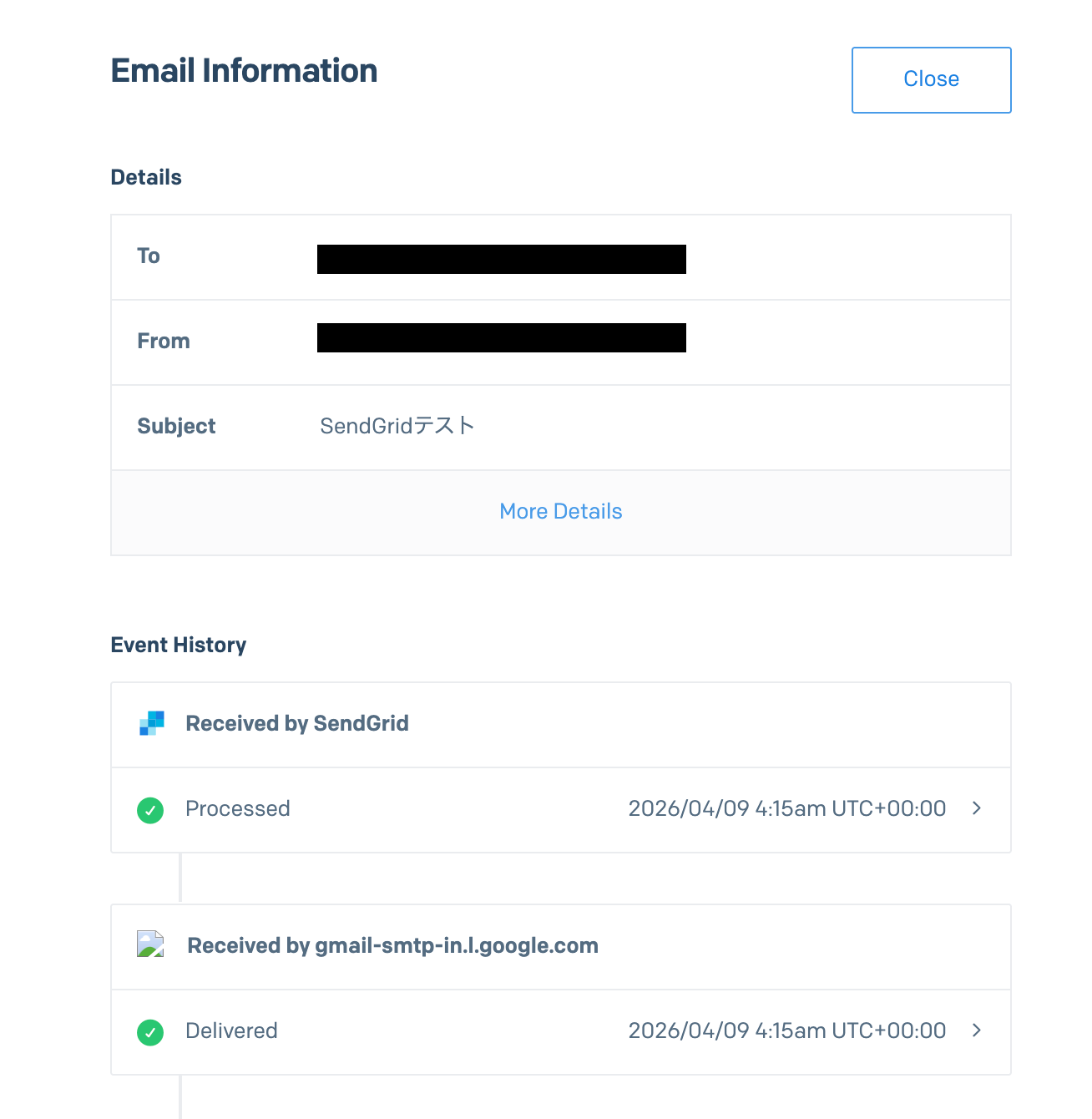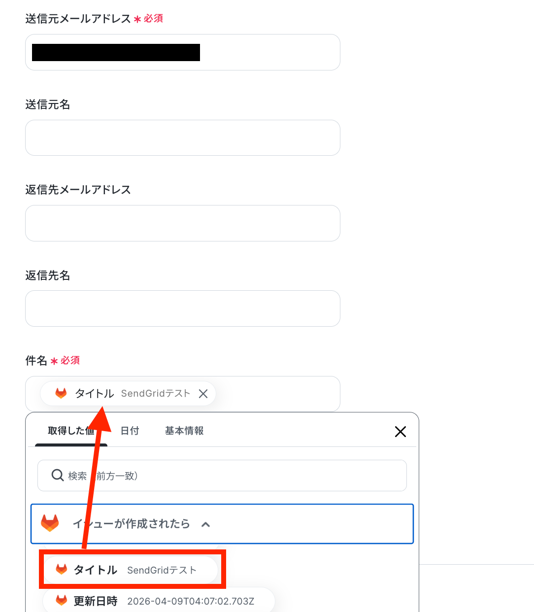 送信元メールアドレスがSendGridに登録のあるメールアドレスが設定されているか確認し、件名はGitLabで取得した値を設定します。