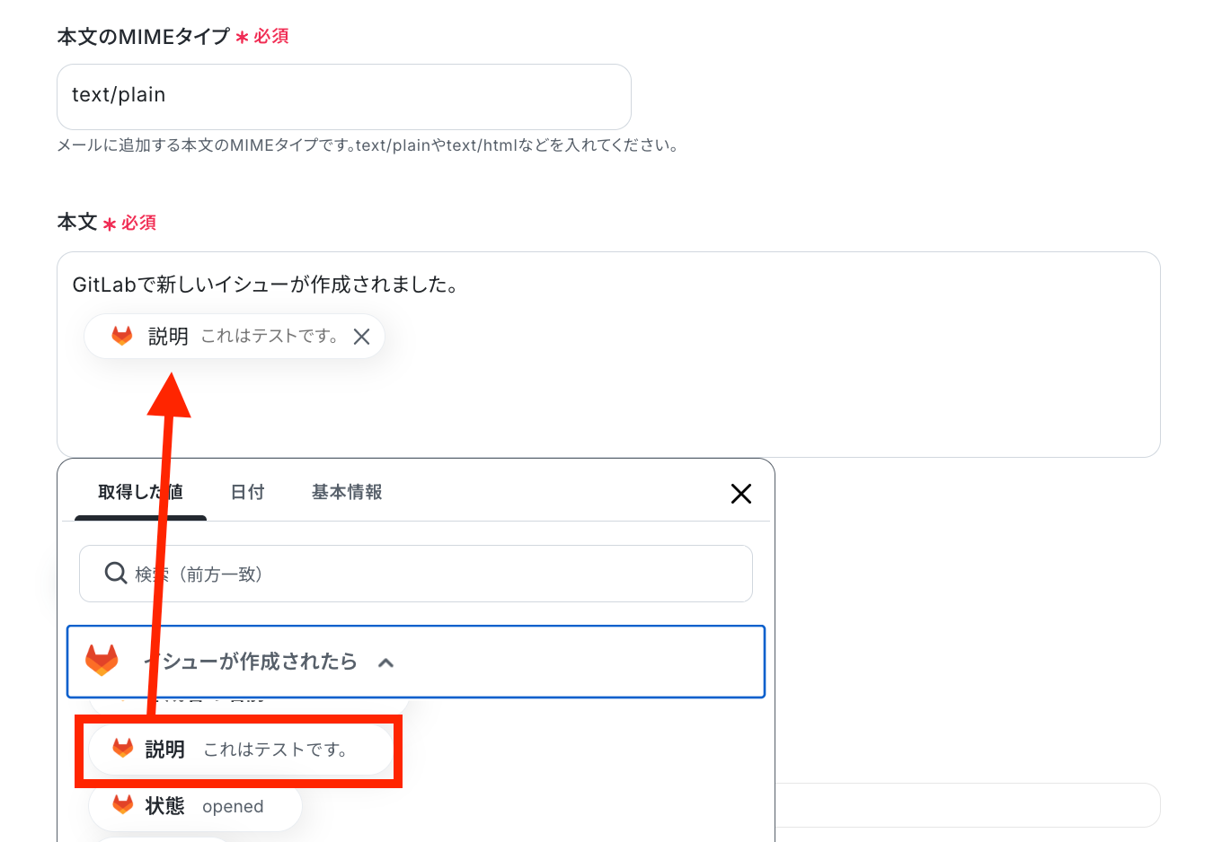 本文のMIMEタイプを入力して、本文を取得した値などを用いて希望の内容を手動で設定します!