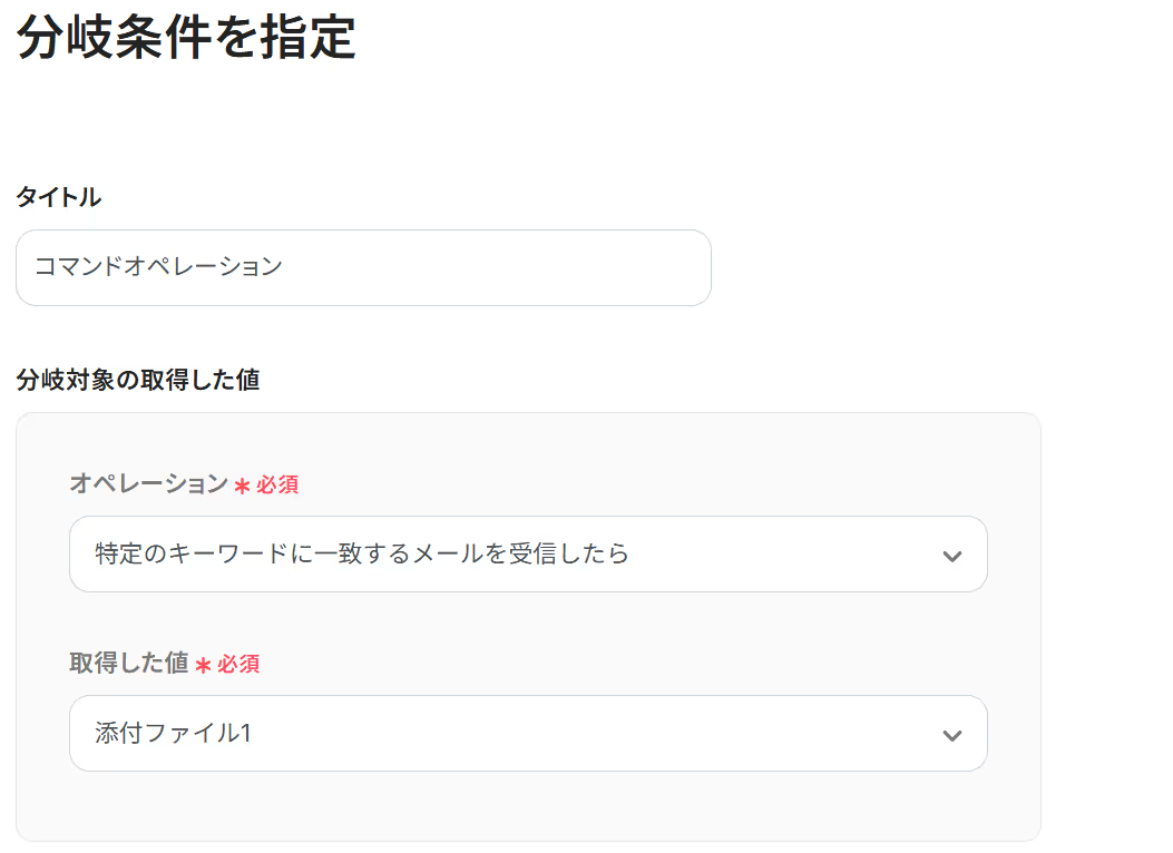 受信したメールに添付ファイルがある場合のみ、後続の処理に進む設定をします。