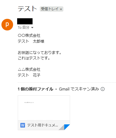 今回は以下のように、「△△株式会社」というキーワードが入ったメールを送信しました。