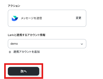 最後にLarkでメッセージ送信を行います。「メッセージを送信」をクリックしてください。