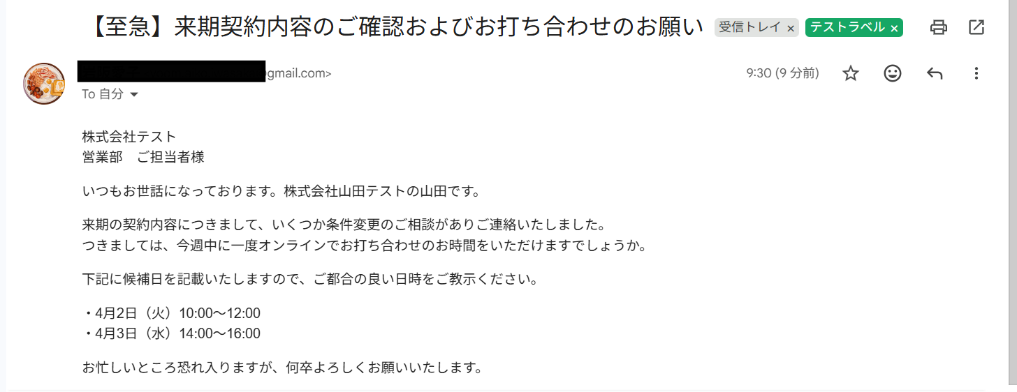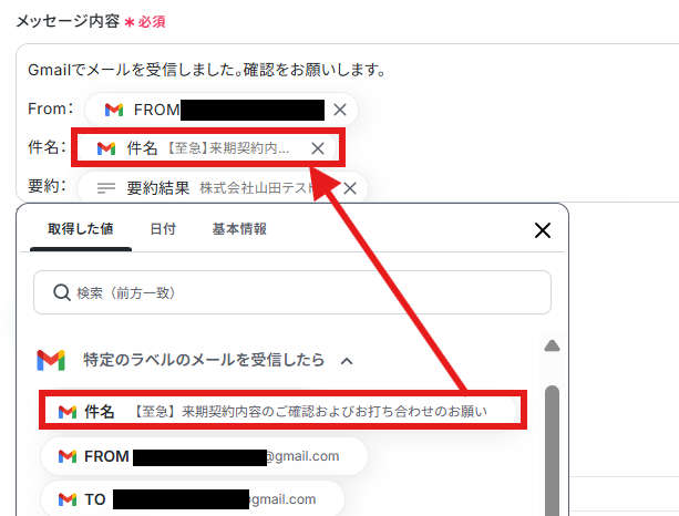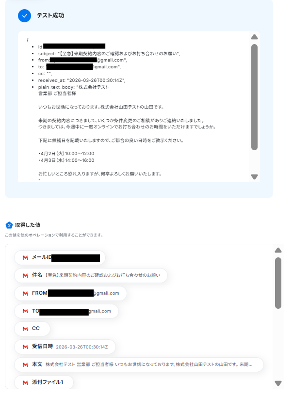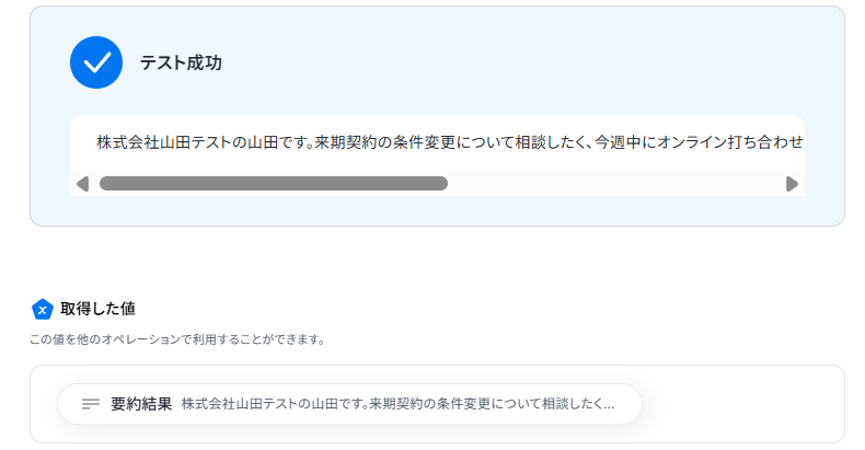 テストが成功し、Gmail本文の要約が作成されればOKです。