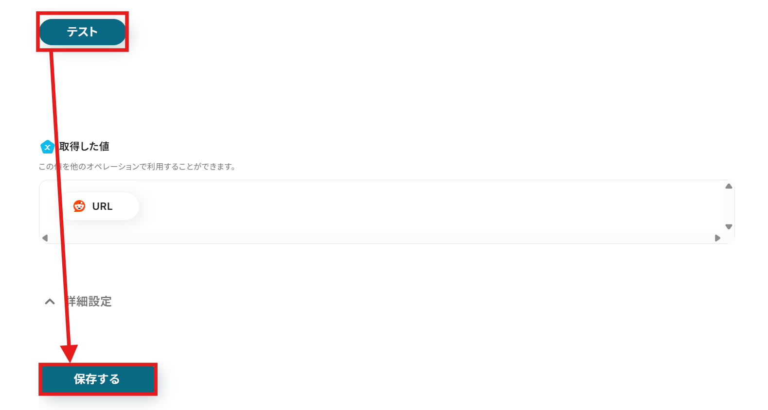 設定後、「テスト」をクリックしてください。