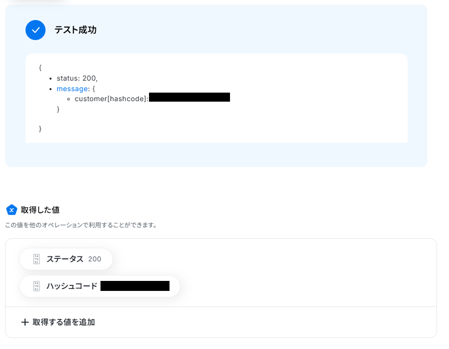 テストが成功すると、取得した値に抽出したテキスト情報が反映されます。 内容を確認し、問題なければ「完了」をクリックして設定完了です!