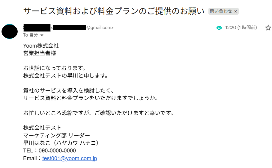サービス資料などの添付ファイルも併せて送付することが可能です。
