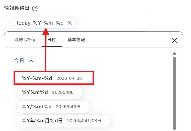 情報獲得日はテンプレートであらかじめ今日(フローボットが起動した日)に設定されているので、このままでOKです。