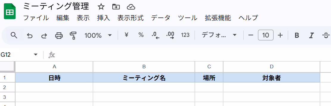 まず準備として、ミーティング情報管理用のシートを用意しておきましょう。