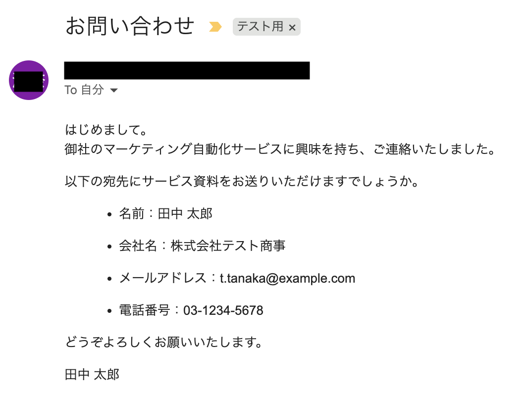 今回は「テスト用」というラベルを作成し、このラベルが付与されたメールの受信を自動化の起点としています。