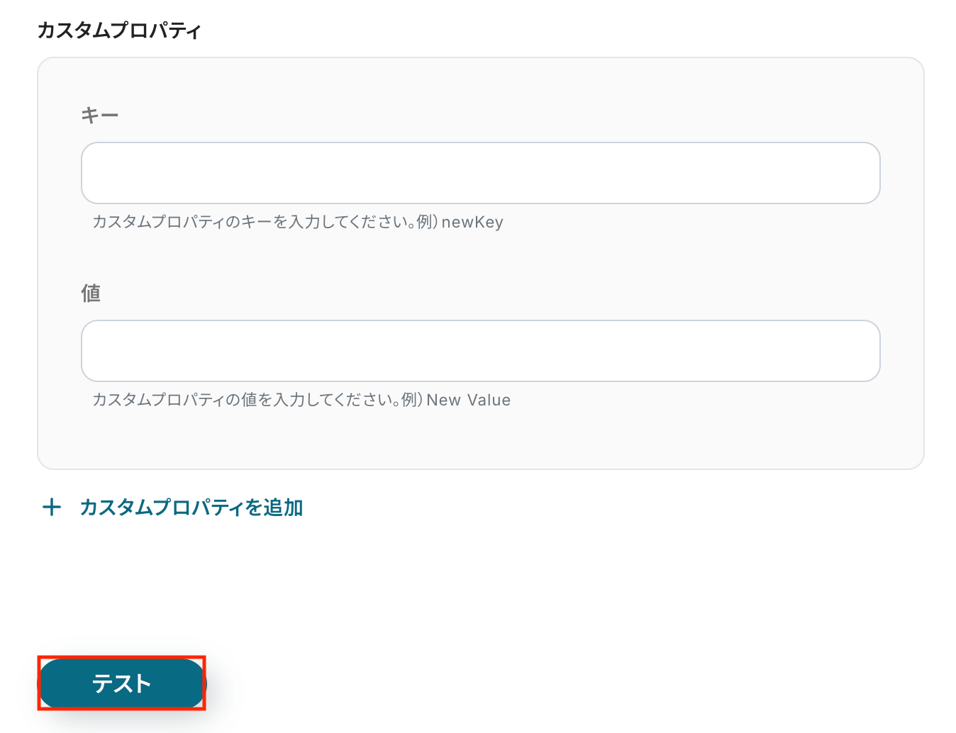 入力が完了したら、設定内容とトリガーの動作を確認するため「テスト」をクリックします。