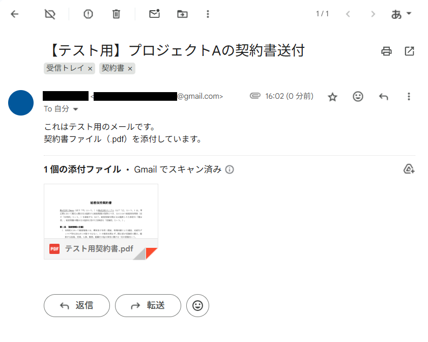 Gmailの指定したラベルに仕分けられる添付ファイル付きのメールを送信し、そのファイルがOneDriveに格納されていれば成功です。