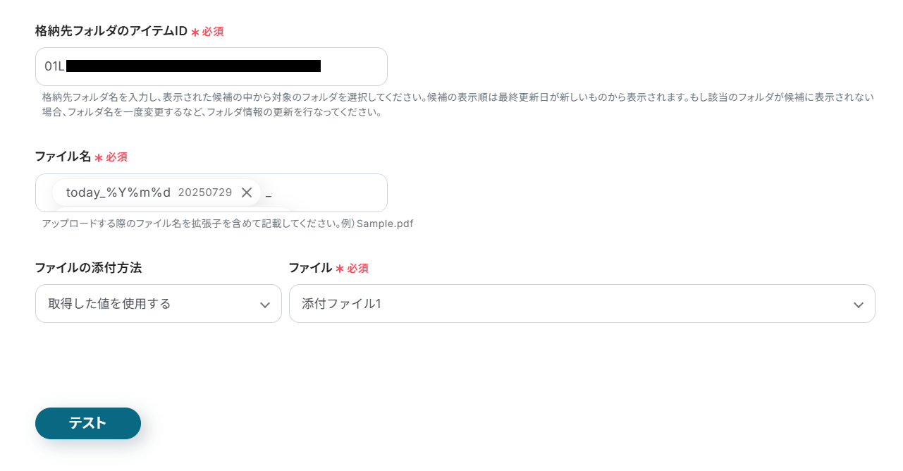 この連携により、請求書や報告書といった重要なファイルを都度手動で保存する手間が削減され、保存漏れのリスクも解消されるため、チーム内でのスムーズな情報共有やファイル管理を実現できるでしょう。