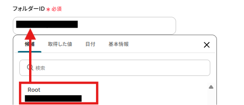 フォルダーIDは以下のように表示される候補から選択します。