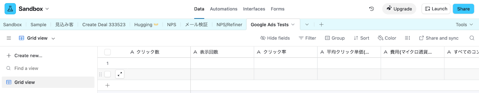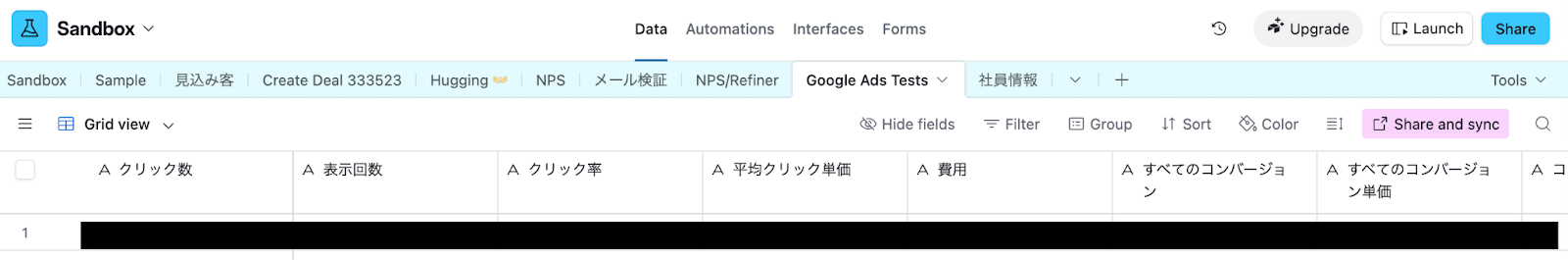 実際にスケジュールトリガーが実行された後、AirtableにGoogle Adsデータが正しく連携されているかを確認してみましょう。