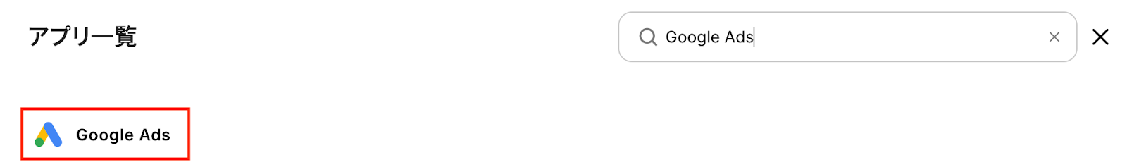 新規接続をクリックしたあと、アプリのメニュー一覧が表示されるのでGoogle Adsと検索し、対象アプリをクリックしてください。