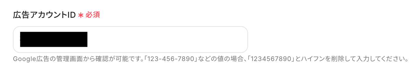 Google Adsの管理画面右上(アカウントアイコン横)に表示される「123-456-7890」のような数値を入力してください。