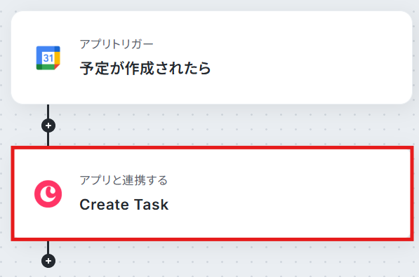 ステップ4:Copperにタスクを作成するアクションの設定 Googleカレンダーの予定をもとにCopperに自動でタスクを作成する設定を行います! 「Create Task」という項目をクリックしてください。