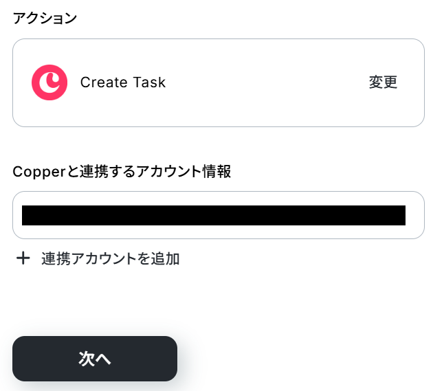 Copperと連携するアカウント情報を確認したら、次のページに進みましょう。