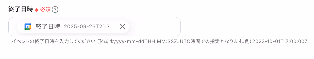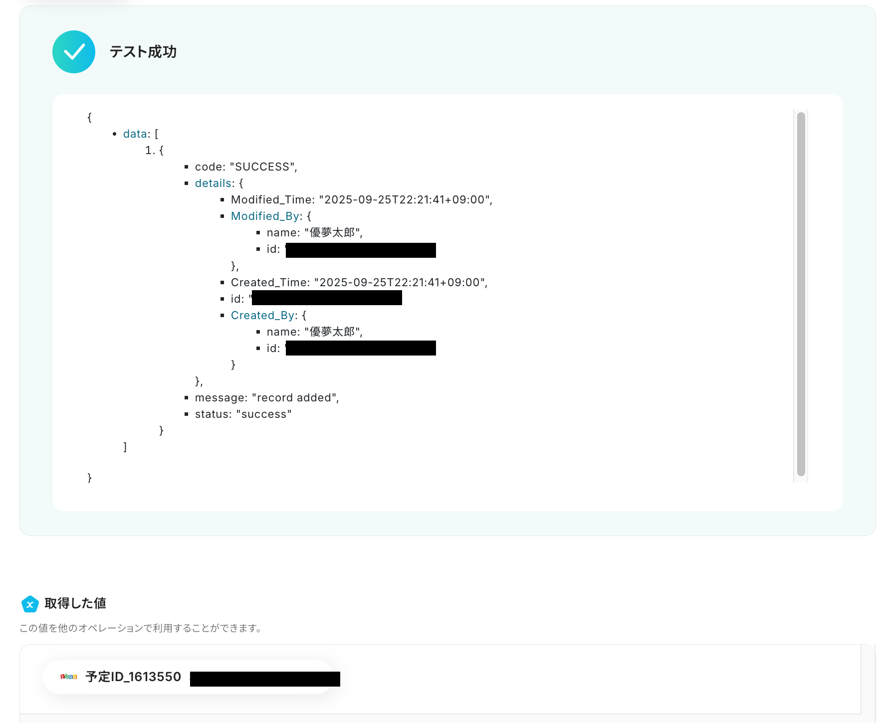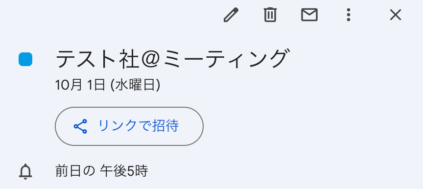 テストに成功すると、Googleカレンダーに作成された予定に関する情報が表示されます。