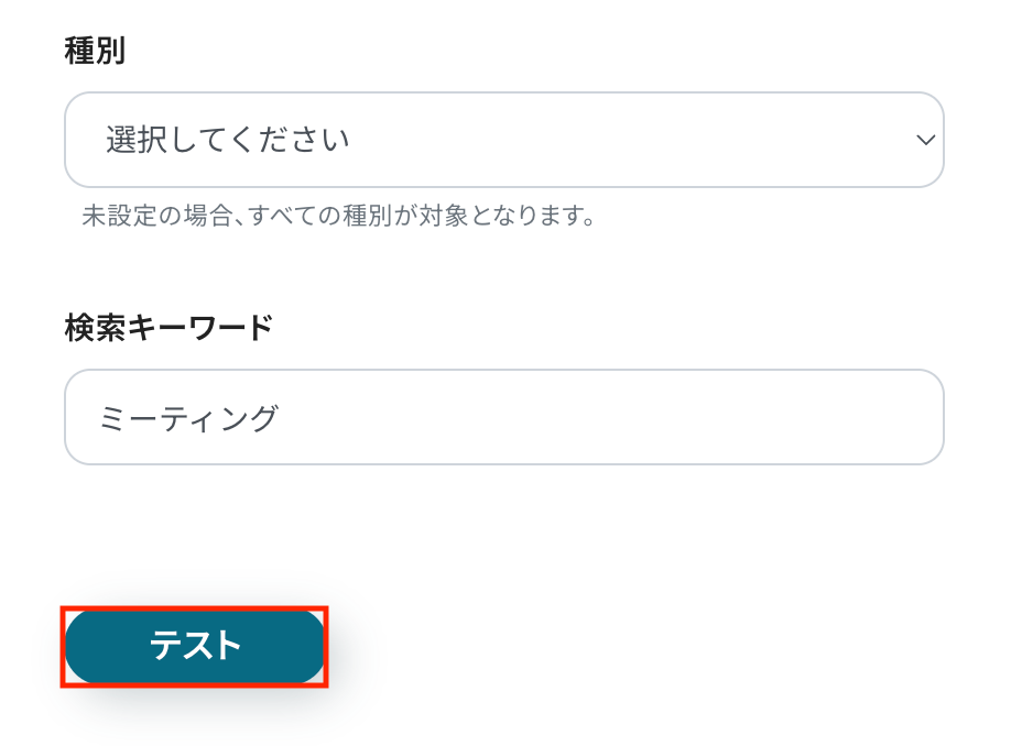 入力が完了したら、設定内容とトリガーの動作を確認するため「テスト」をクリックします。