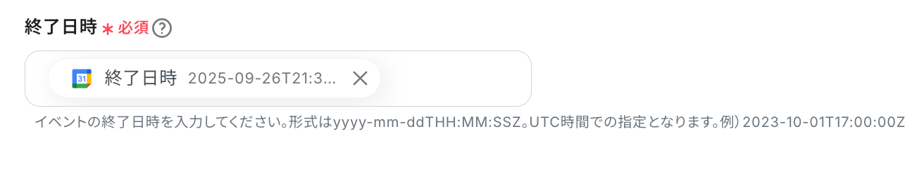 Zoho CRMに追加される予定の詳細を設定しましょう。ステップ3で取得した値から選択します。取得した値を使用せずに設定すると、同じ内容が繰り返し追加されることになるため注意しましょう。