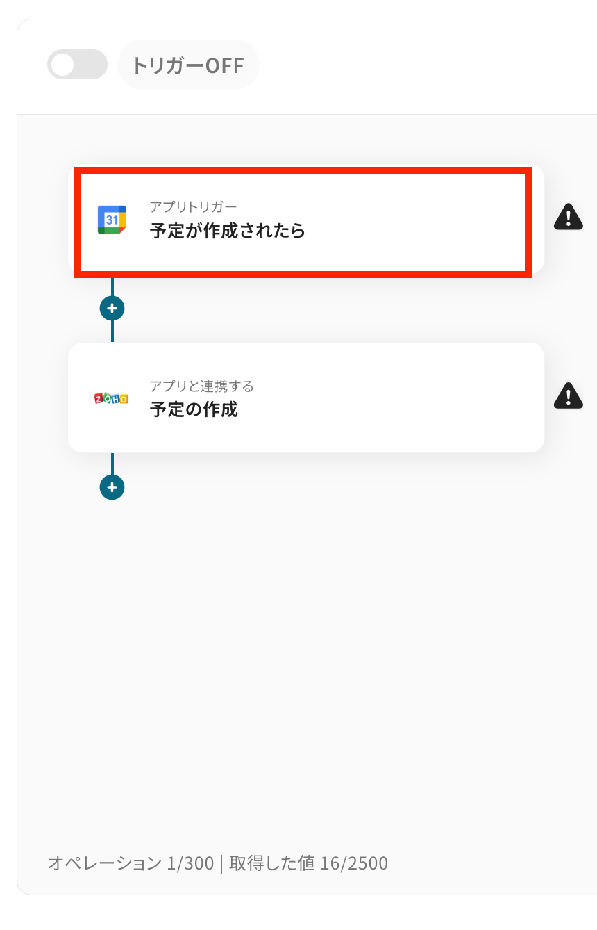 それでは、さっそく実際にGoogleカレンダーとZoho CRMを連携したフローを作成してみましょう!
