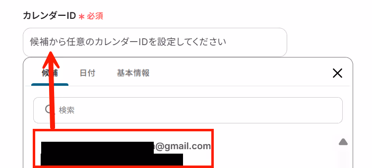 Yoomの画面に戻り、カレンダーIDのフィールドをクリックします。