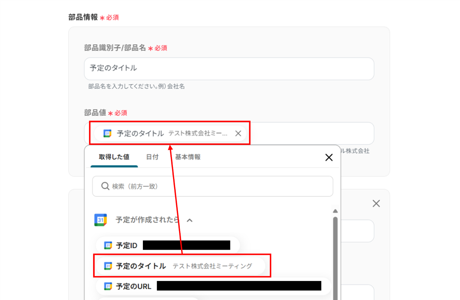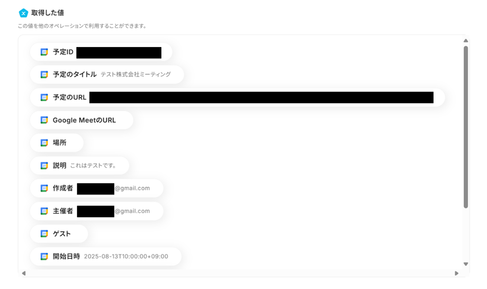 「取得した値」にGoogleカレンダーの情報が反映されればテスト成功です。