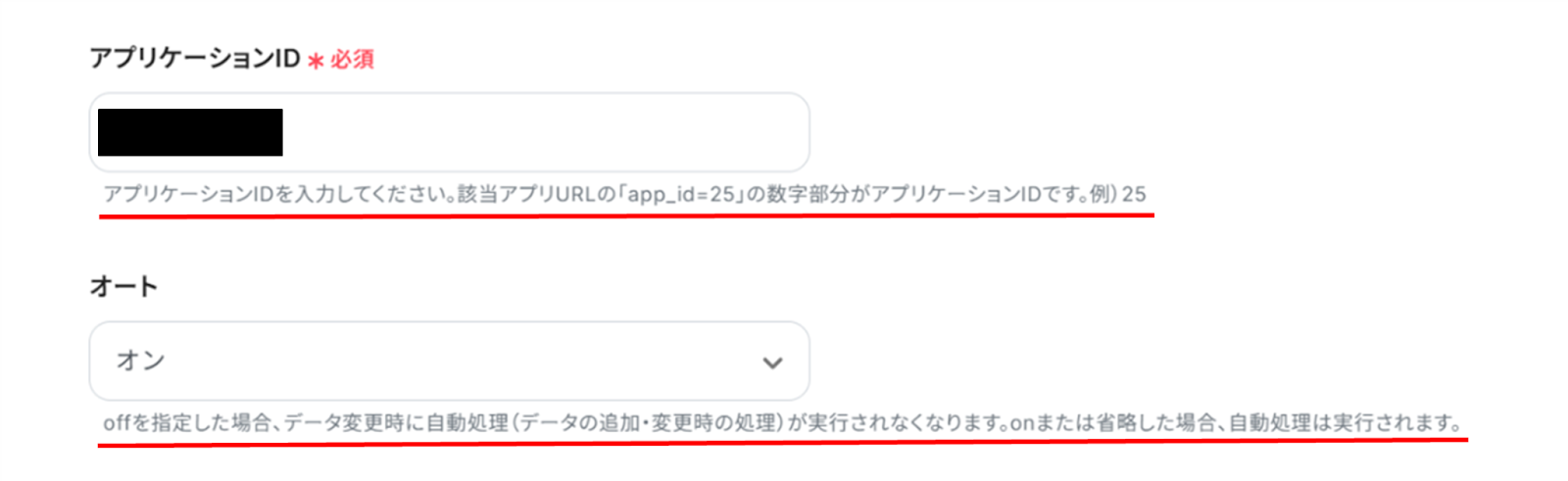 (3)「API接続設定」画面で赤線を確認の上、desknet's NEO(AppSuite)のシステムを識別するためにアプリケーションIDを入力します。