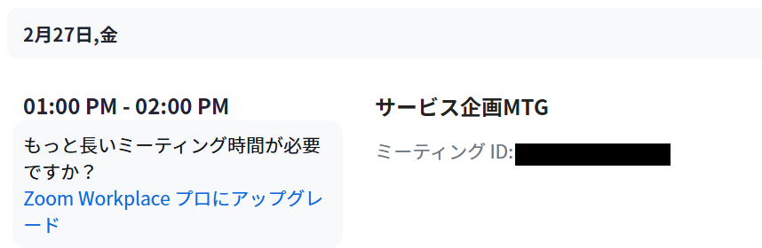 Zoomを確認すると会議が作成されています。