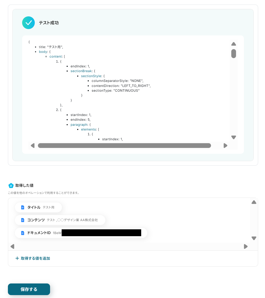今回、テスト用に使用したGoogleドキュメントは以下のとおりです。