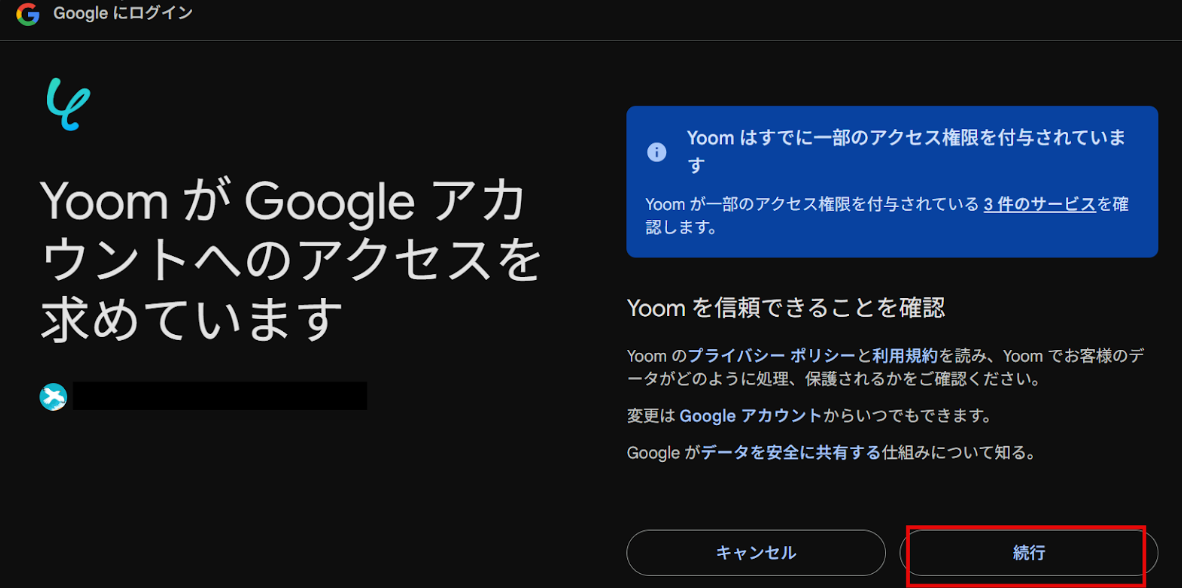 以下の画面で「続行」をクリックします。