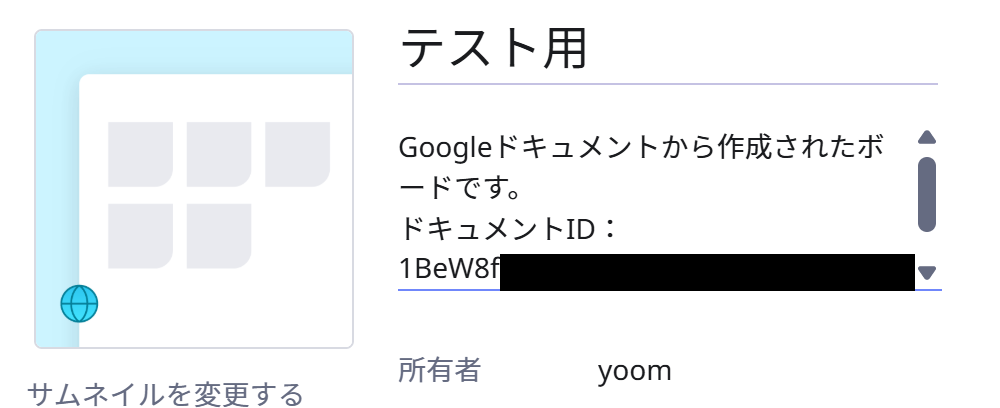 今回はMiroのボードに「ドキュメントID」を挿入しましたが、内容は自由にカスタマイズ可能です。