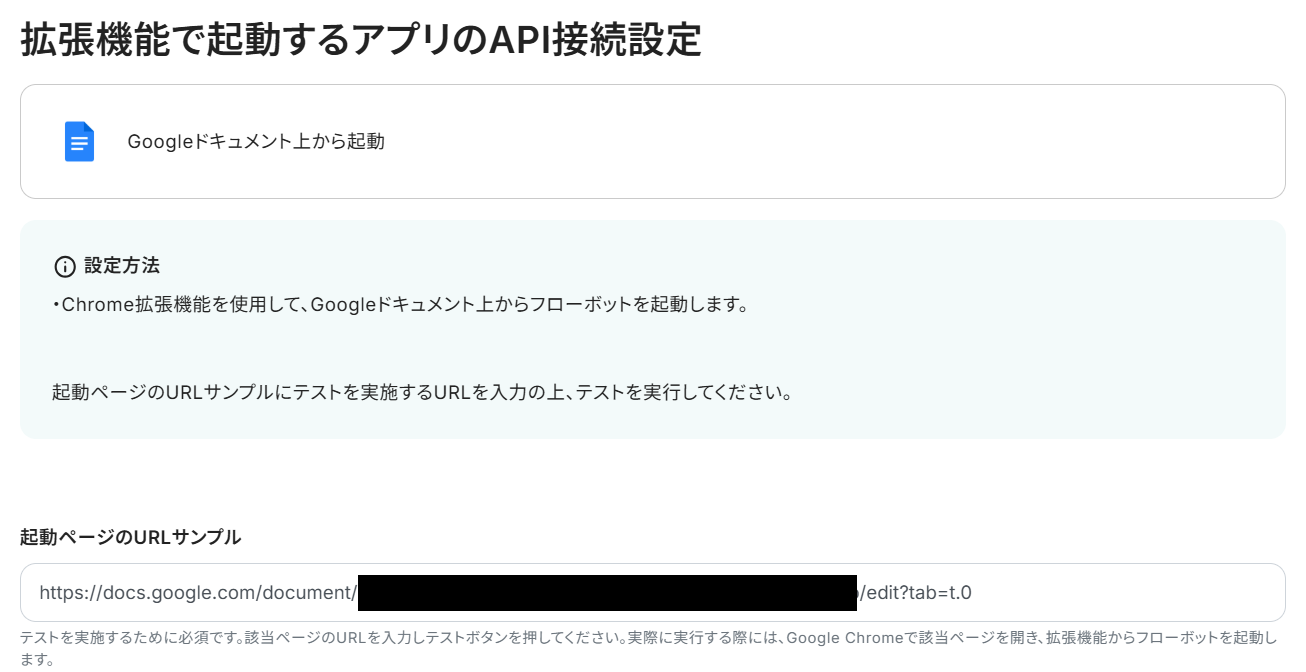 起動ページのURLサンプルの欄に、GoogleドキュメントのURLを貼り付けてください。