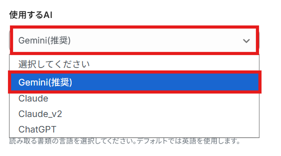使用するAIを選択します。 今回は、推奨とされている「Gemini」を選択しています。