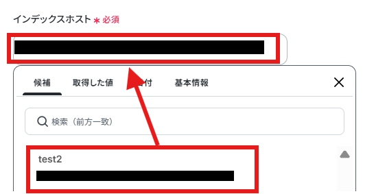 インデックスホストは候補から選択してください。