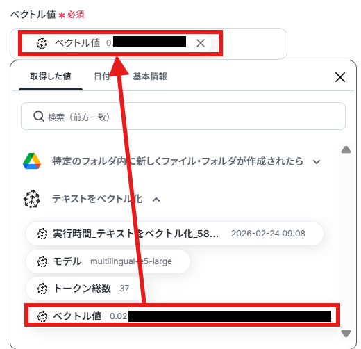ベクトルID・ベクトル値は取得した値から入力しましょう。 取得した値を活用することで、固定値ではなく、トリガーが実行されるたびに最新の情報が反映できます。