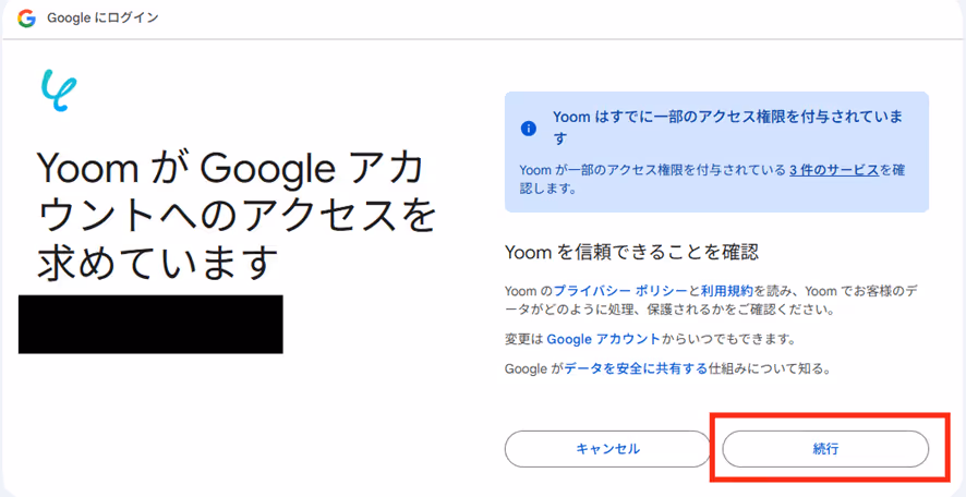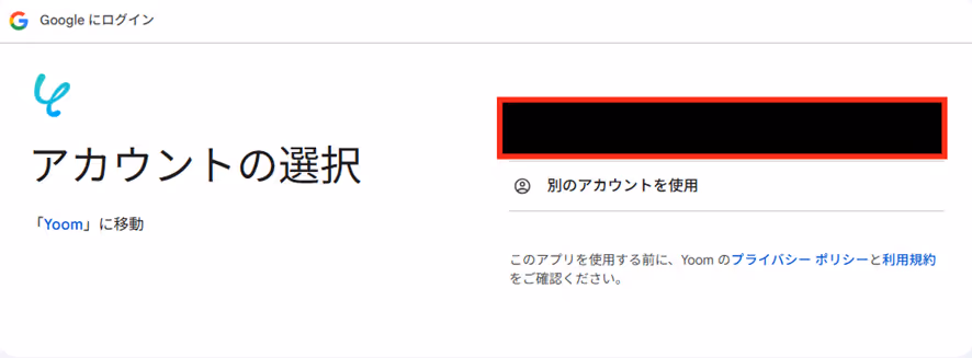 Yoomと連携したいアカウントを選択します。