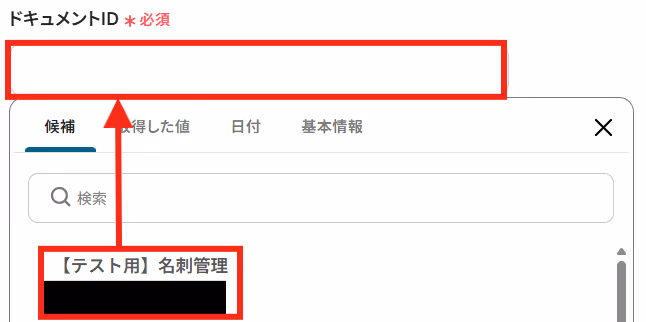 「ファイルID」を「取得した値」から設定しましょう。