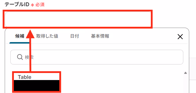 Codaで作成したテーブルの列の「列ID」を候補から選択しましょう。
