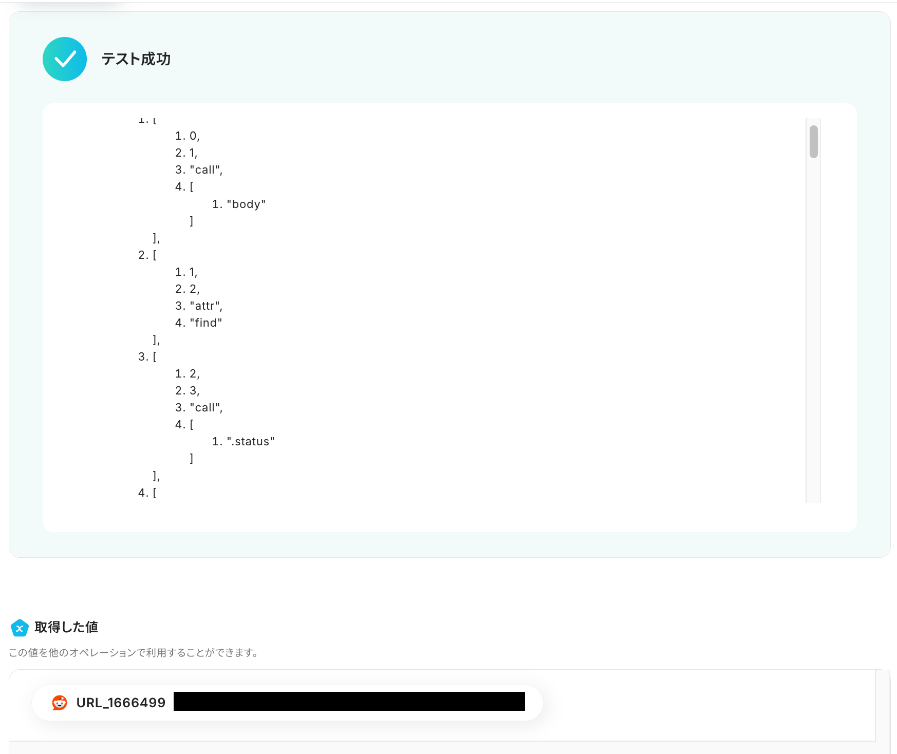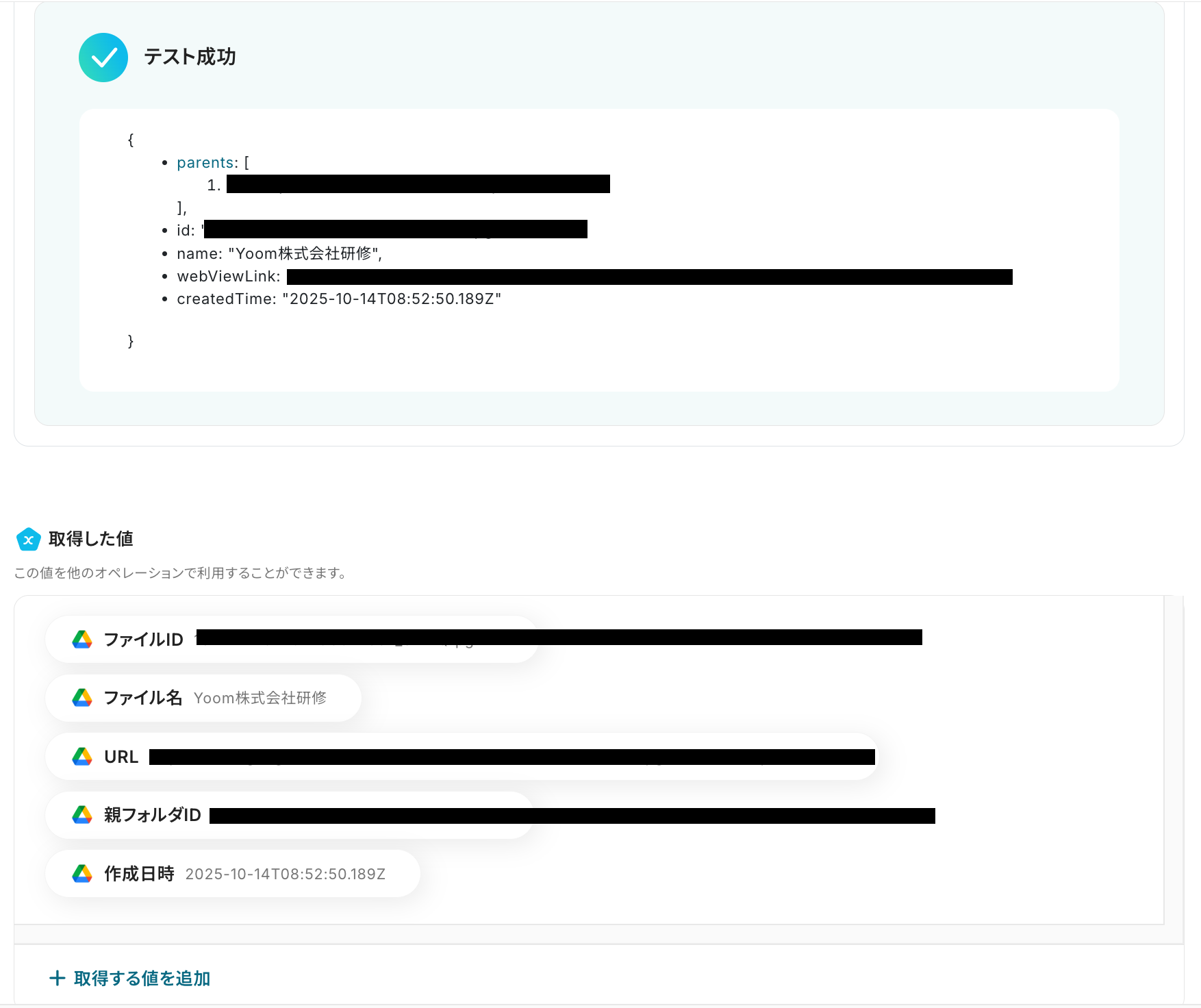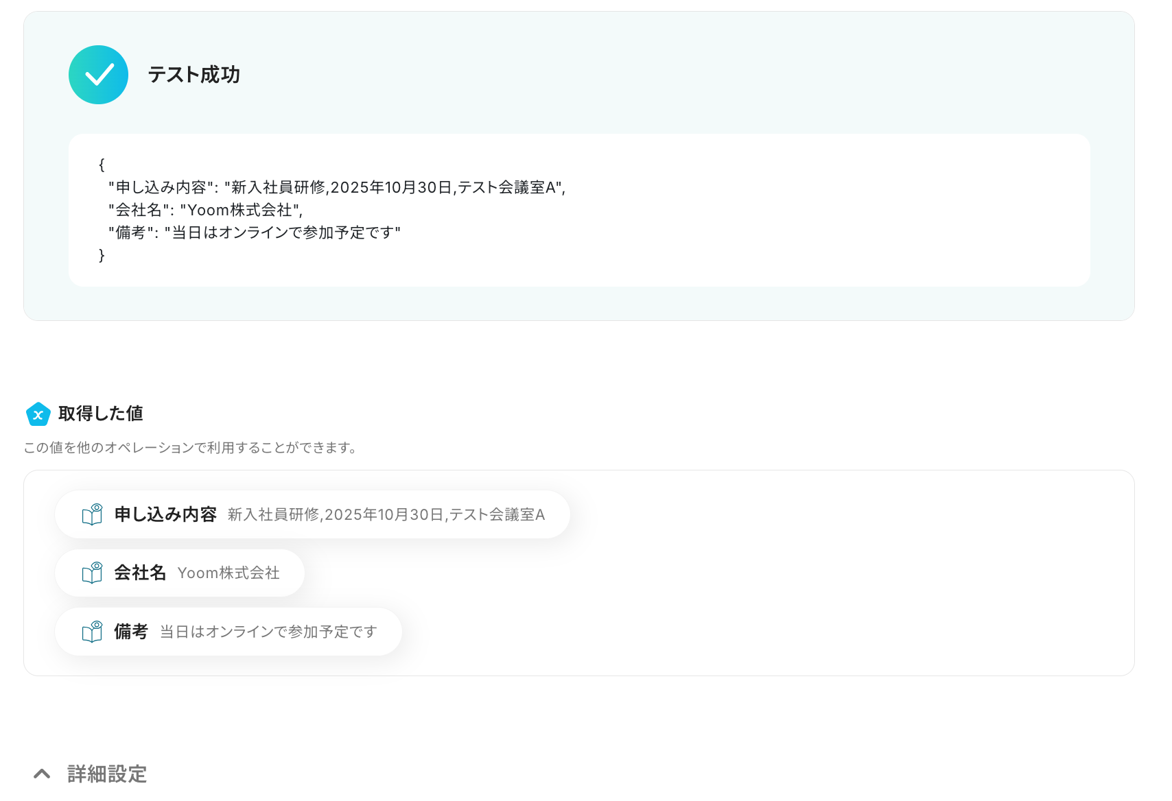 完了後、Yoomに戻り「テスト」をクリックしてください!