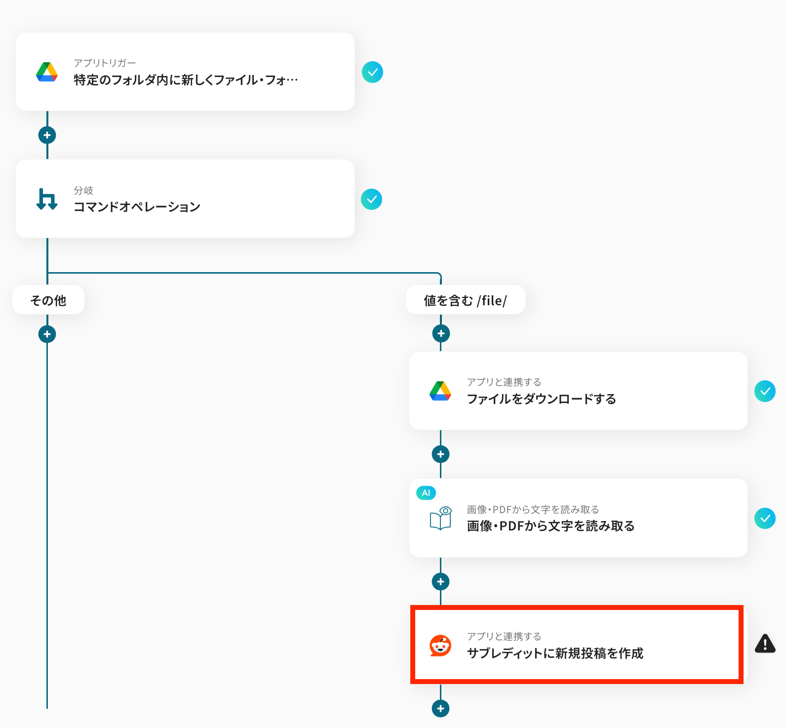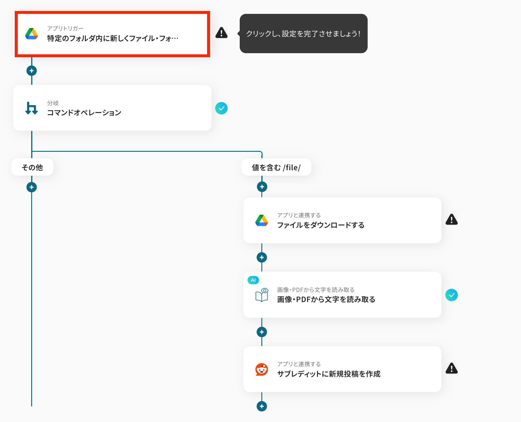 今回は「Google Driveにファイルがアップロードされたら、OCRを行いRedditのサブレディットに投稿する」フローを作成していきます!