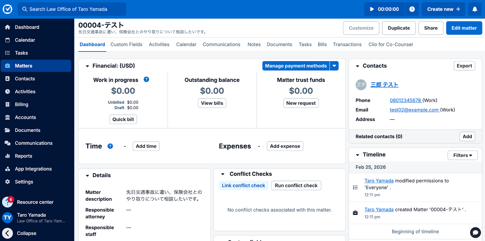 ステップ5:Clio ManageでMatterを作成する