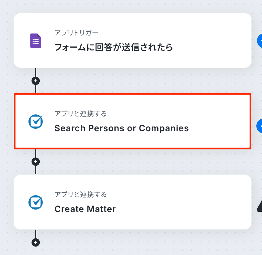 続いて、Googleフォームから取得した回答をもとに、Clio ManageでMatterを作成する対象の人物または企業を検索しましょう。