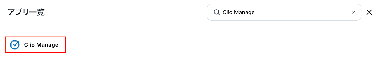 新規接続をクリックしたあと、アプリのメニュー一覧が表示されるのでClio Manageと検索し、対象アプリをクリックしてください。