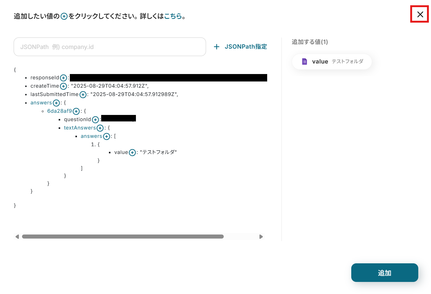 - Googleフォームをトリガーとして使用した際の回答内容を取得する方法は下記を参照ください。