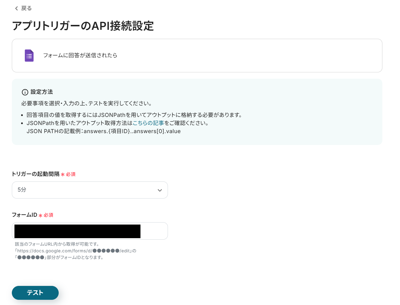 - Googleフォームのトリガー設定では、連携対象となるフォームのIDを正確に指定してください。これにより、特定のフォームからの回答送信のみをきっかけに、このワークフローを起動させることができます。