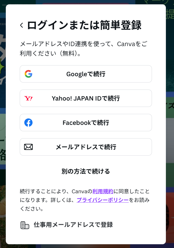 お手持ちのCanvaのアカウントでログインを行ってください。