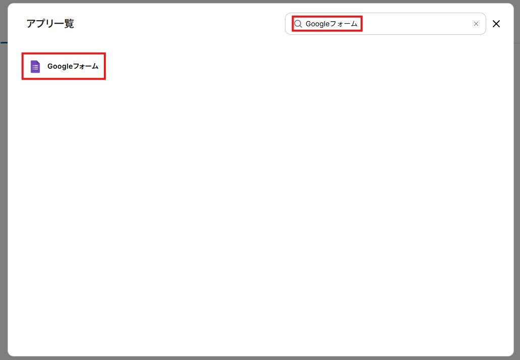 検索ボックスにGoogleフォームと入力し、Googleフォームのアイコンをクリックします。