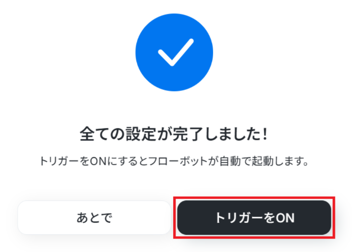 ステップ6:トリガーをONにして動作確認 お疲れ様でした!これですべての設定が完了です。 設定が完了すると以下のようなメニューが表示されるので、トリガーをONにします。 動作確認をしてみましょう。